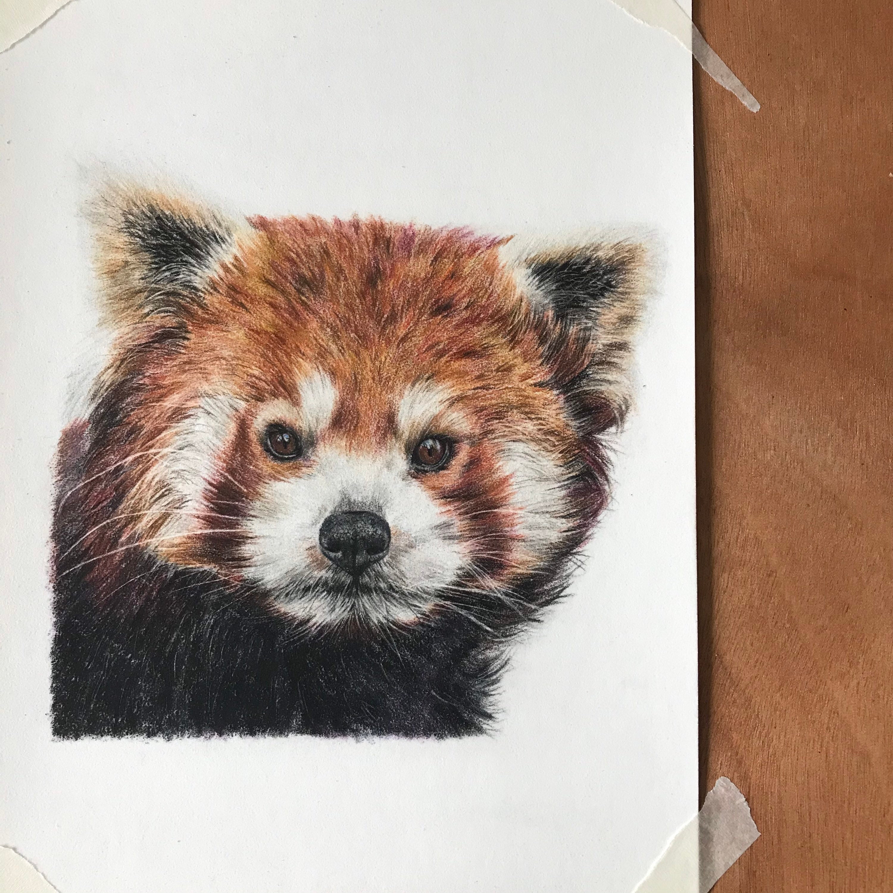 Red Panda Cat Horse Realistic Colour Pencil Drawing 7x9 Etsy